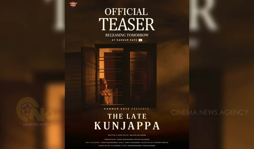 കണ്ണൂര് കഫേയുടെ ബാനറില് ഷിജിത്ത് കല്യാടന് രചനയും സംവിധാനവും നിര്വ്വഹിക്കുന്ന 'ദി ലേറ്റ് കുഞ്ഞപ്പ'(The Late Kunjappa) എന്ന ചിത്രത്തിന്റെ ടീസര് റിലീസായി. കണ്ണൂര് കഫേയുടെ (Kannur Kafe) യൂട്യൂബ് ചാനലിലൂടെയാണ് ചിത്രത്തിന്റെ ടീസര് റിലീസായത്.