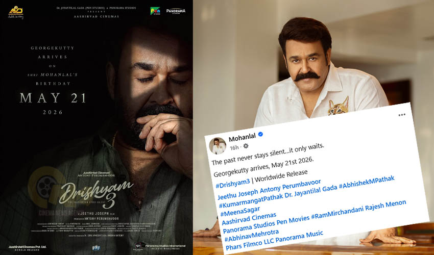മലയാള സിനിമയിലെ ആദ്യ ഫാമിലി ത്രില്ലര് എന്നു വിശേഷിപ്പിക്കാവുന്ന 'ദൃശ്യം' സിനിമയുടെ മൂന്നാം ഭാഗമായ 'ദൃശ്യം-3' മോഹന്ലാലിന്റെ ജന്മദിനമായ മെയ്…