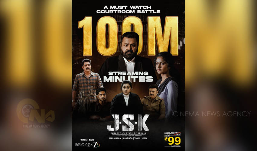 'ജനകി V/S സ്റ്റേറ്റ്സ് ഓഫ് കേരള' 100 മില്ല്യണ് സ്ട്രീമിംഗ്....