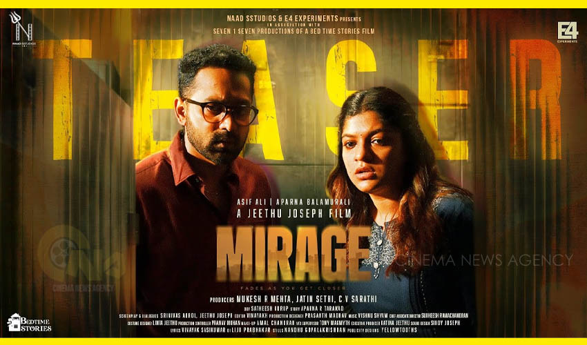 Watch Videoആസിഫ് അലി, അപര്ണ്ണ ബാലമുരളി, ഹക്കീം ഷാജഹാന്,ഹന്ന റെജി കോശി, സമ്പത്ത് എന്നിവരെ പ്രധാന കഥാപാത്രങ്ങളാക്കി ജീത്തു ജോസഫ് സംവിധാനം ചെയ്യുന്ന ' '' മിറാഷ് ' എന്ന ചിത്രത്തിന്റെ ഒഫീഷ്യല് ടീസര് റിലീസായി.