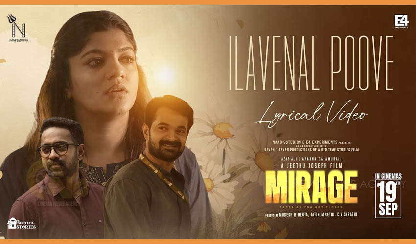 Watch Videoആസിഫ് അലി, അപര്ണ്ണ ബാലമുരളി, ഹക്കീം ഷാജഹാന്, ഹന്ന റെജി കോശി, സമ്പത്ത് എന്നിവരെ പ്രധാന കഥാപാത്രങ്ങളാക്കി ജീത്തു ജോസഫ് സംവിധാനം ചെയ്യുന്ന 'മിറാഷ്' എന്ന ചിത്രത്തിന്റെ ലിറിക്കല് വീഡിയോ ഗാനം റിലീസായി.